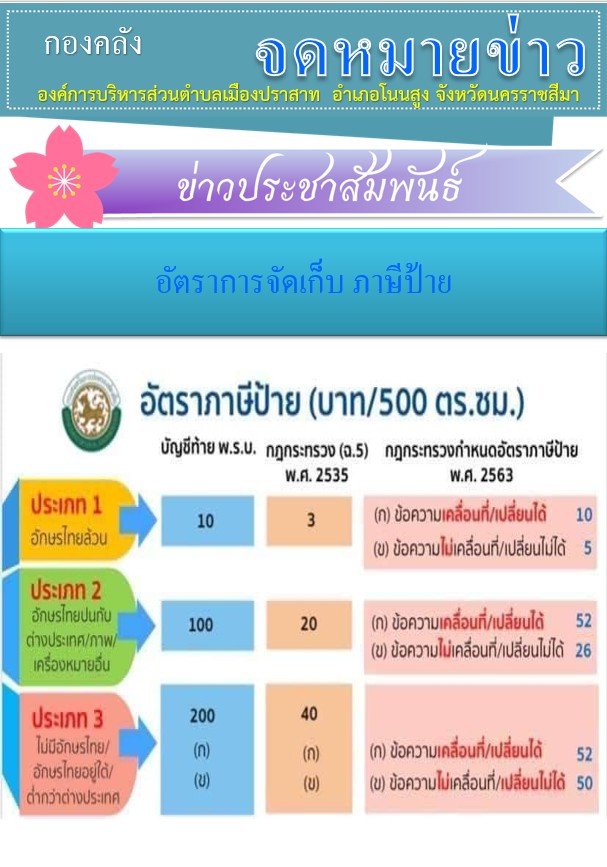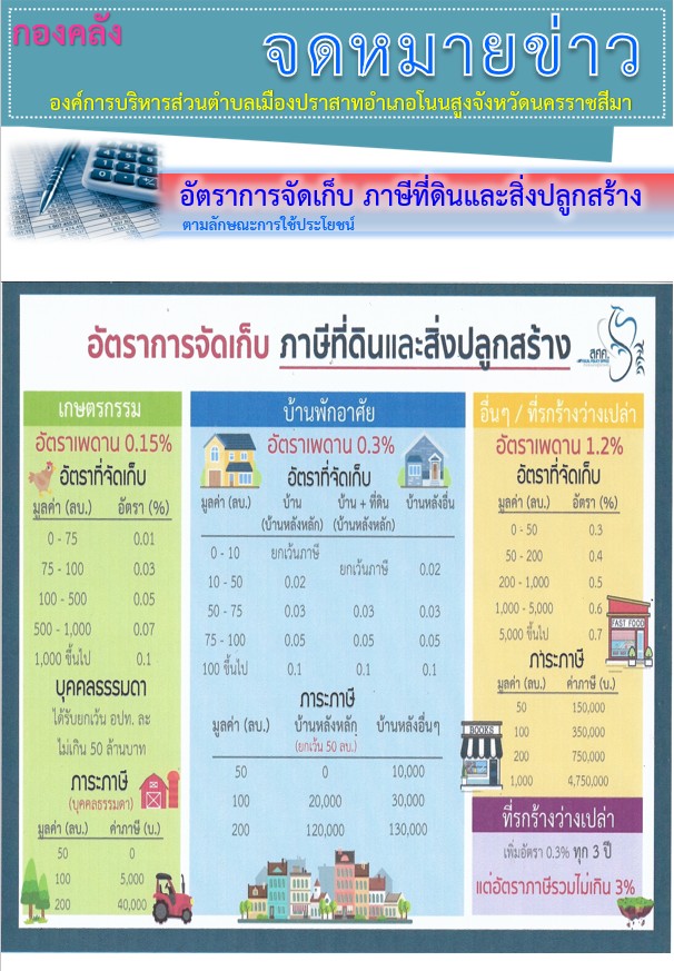 จดหมายข่าว อัตราการจัดเก็บถาษีที่ดินและสิ่งปลูกสร้าง