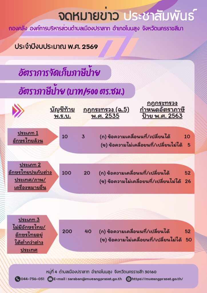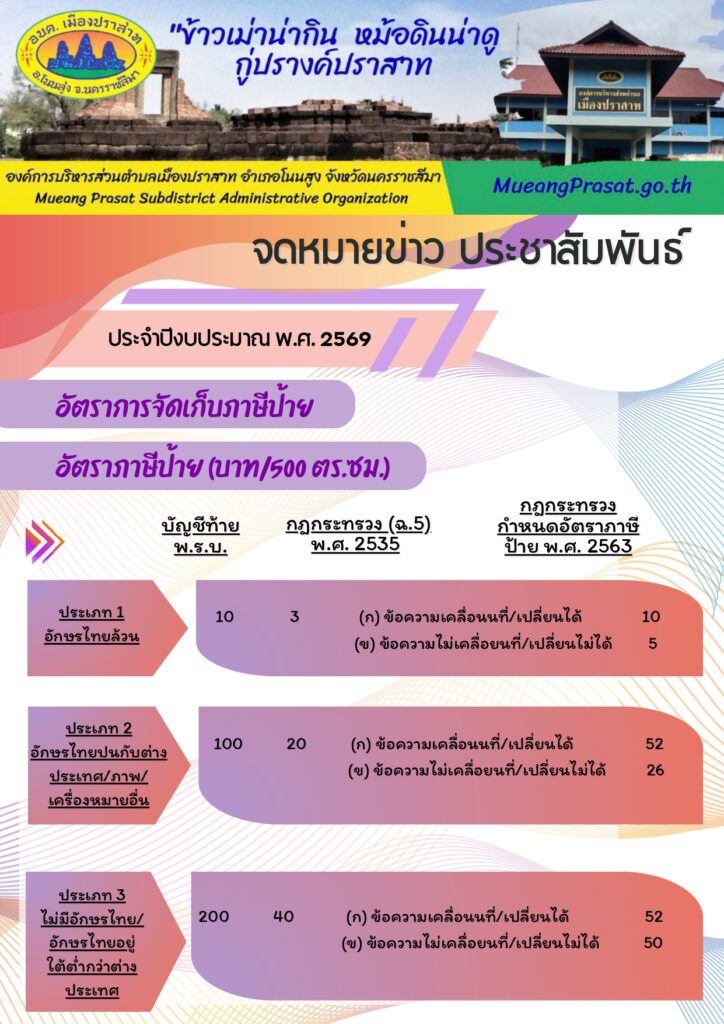 ประชาสัมพันธ์อตตราการเก็บภาษีป้าย
