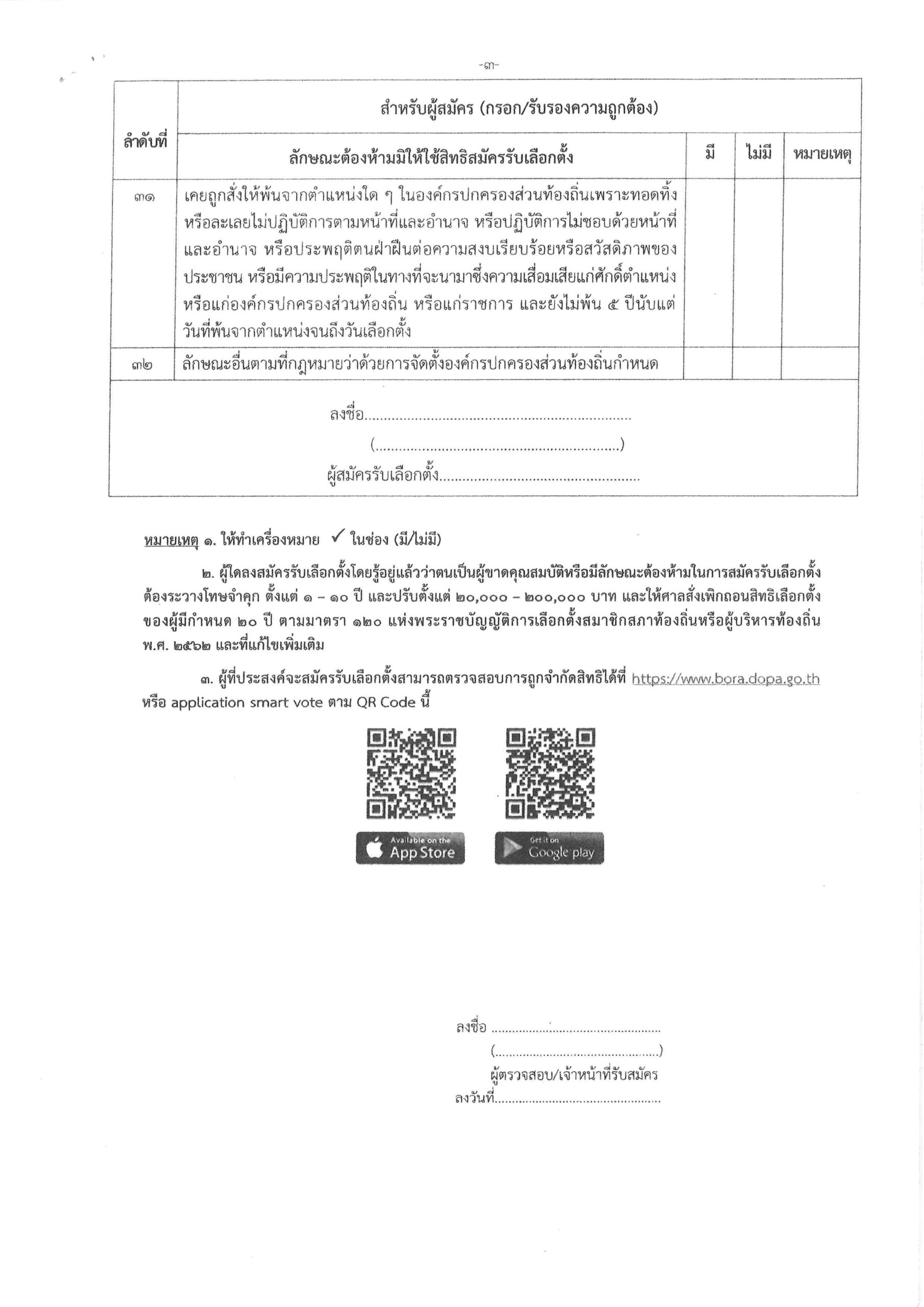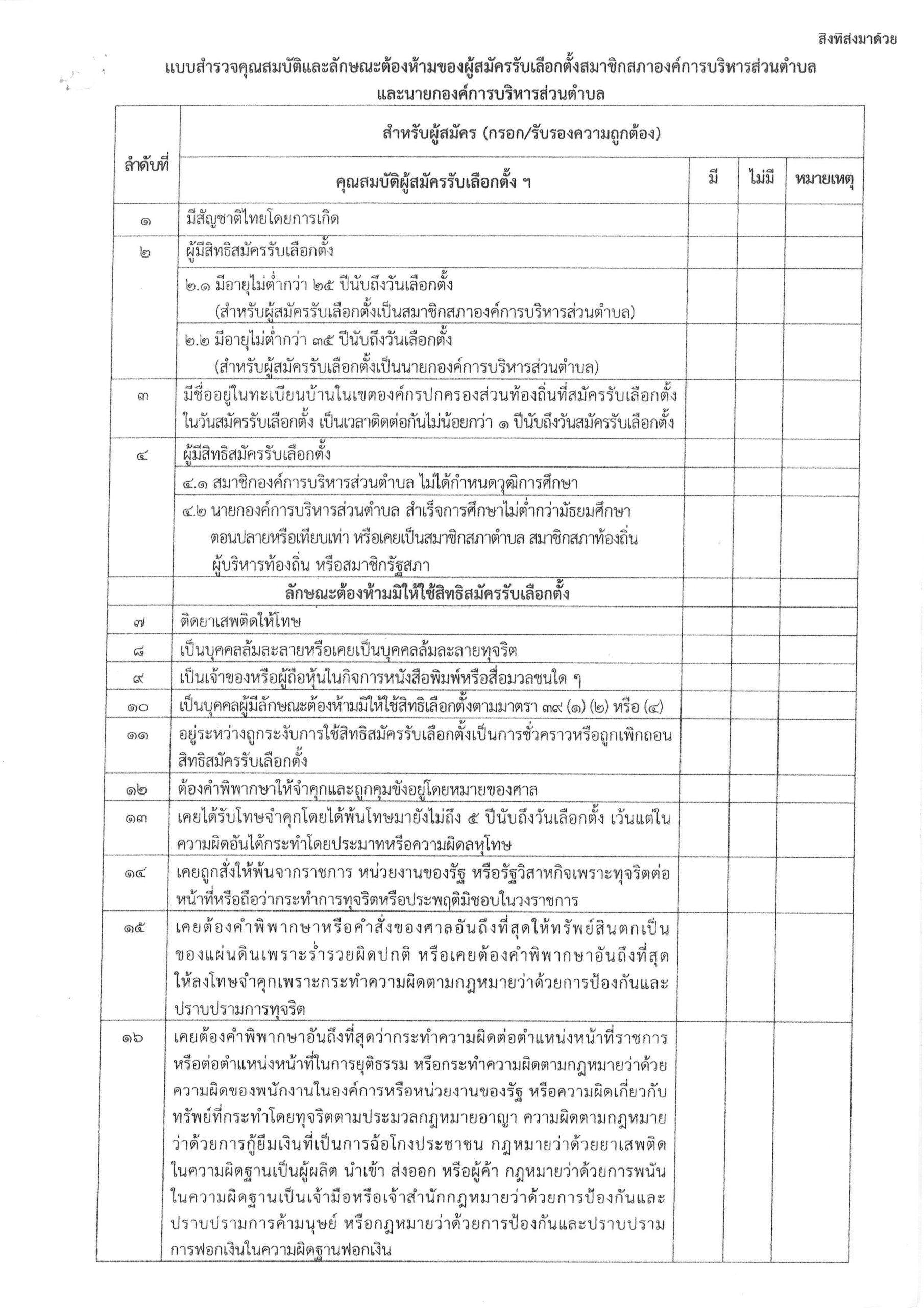 แบบสำรวจคุณสมบัติและลักษณะต้องห้ามของผู้สมัครรับเลือกตั้งสมาชิกสภาองค์การบริหารส่วนตำบลและนายกองค์การบริหารส่วนตำบล