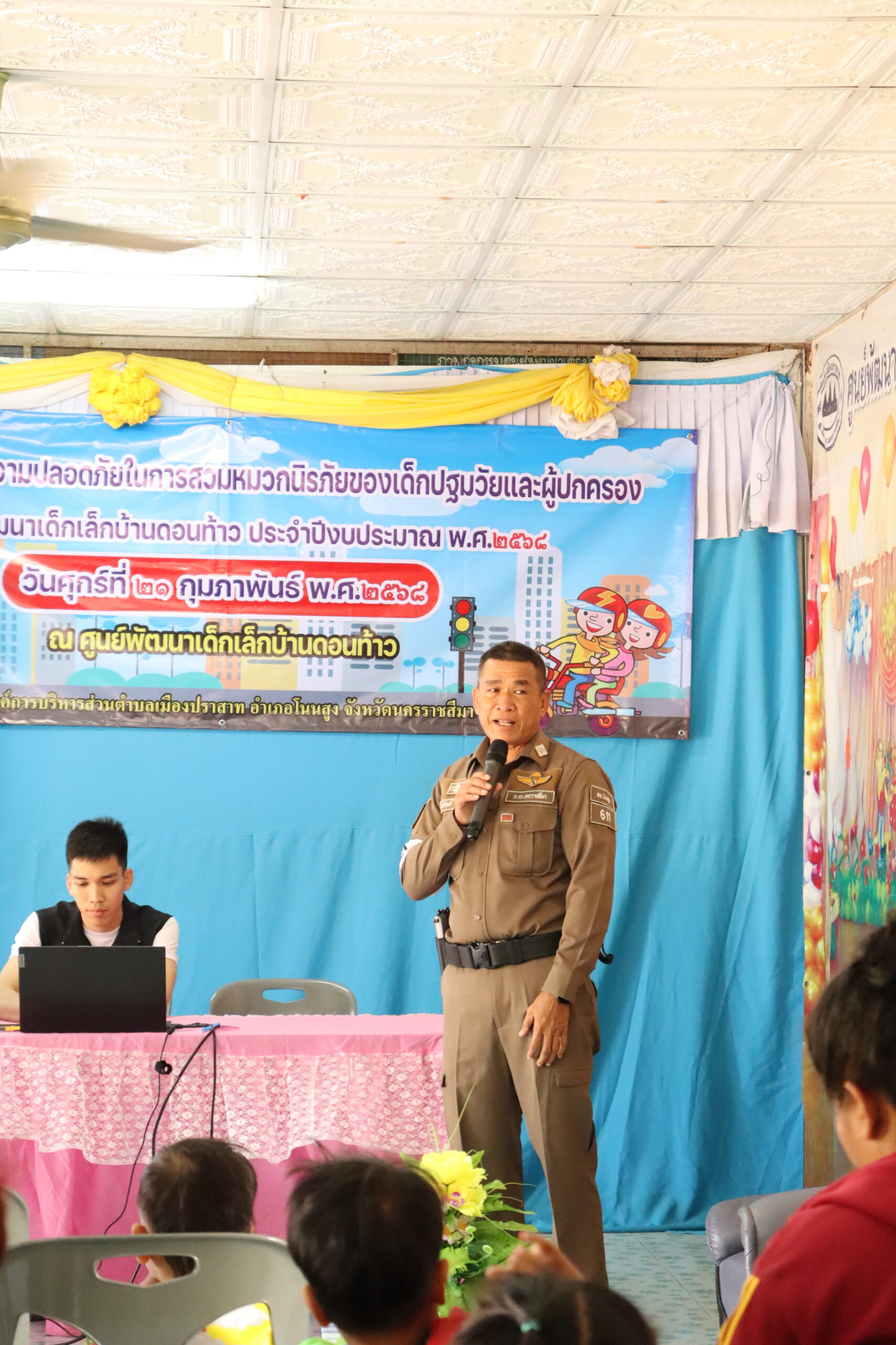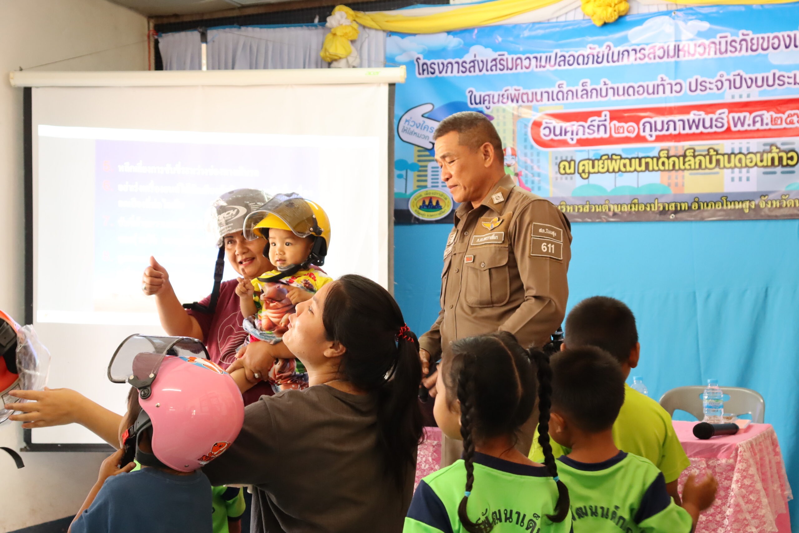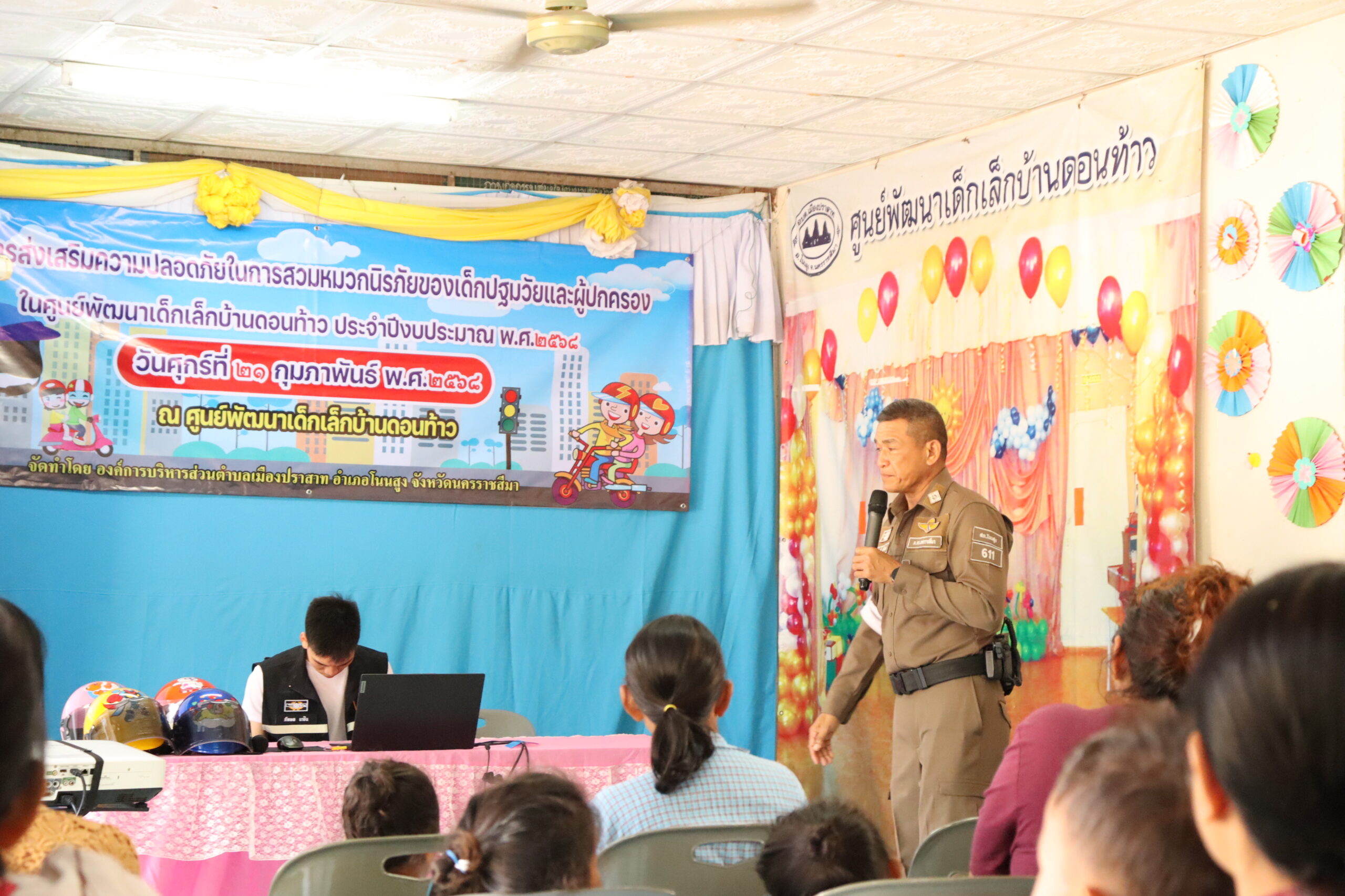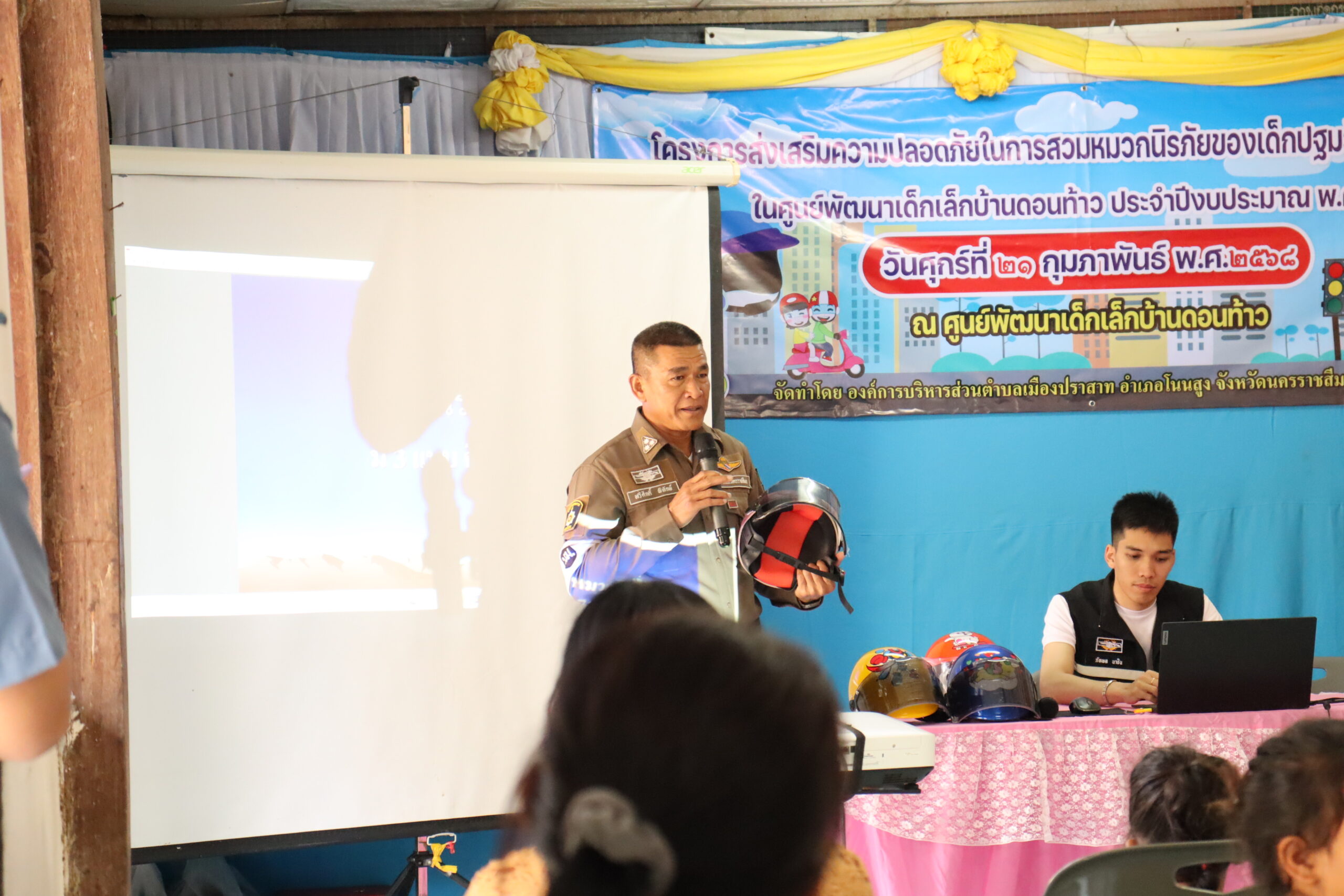วันศุกร์ที่ 21 กุมภาพันธ์ 2568 งานป้องกันและบรรเทาสาธารณภัย สำนักปลัดองค์การบริหารส่วนตำบลเมืองปราสาท ได้จัดทำโครงการส่งเสริมความปลอดภัยในการสวมหมวกนิรภัยของเด็กปฐมวัยและผู้ปกครองในศูนย์พัฒนาเด็กเล็กบ้านดอนท้าว ประจำปีงบประมาณ พ.ศ. 2568 โดยมีนายชิ้น กอนจอหอ นายกองค์การบริหารส่วนตำบลเมืองปราสาท เป็นประธานเปิดโครงการ และได้รับความอนุเคราะห์วิทยากรจากสถานีตำรวจภูธรโนนสูง